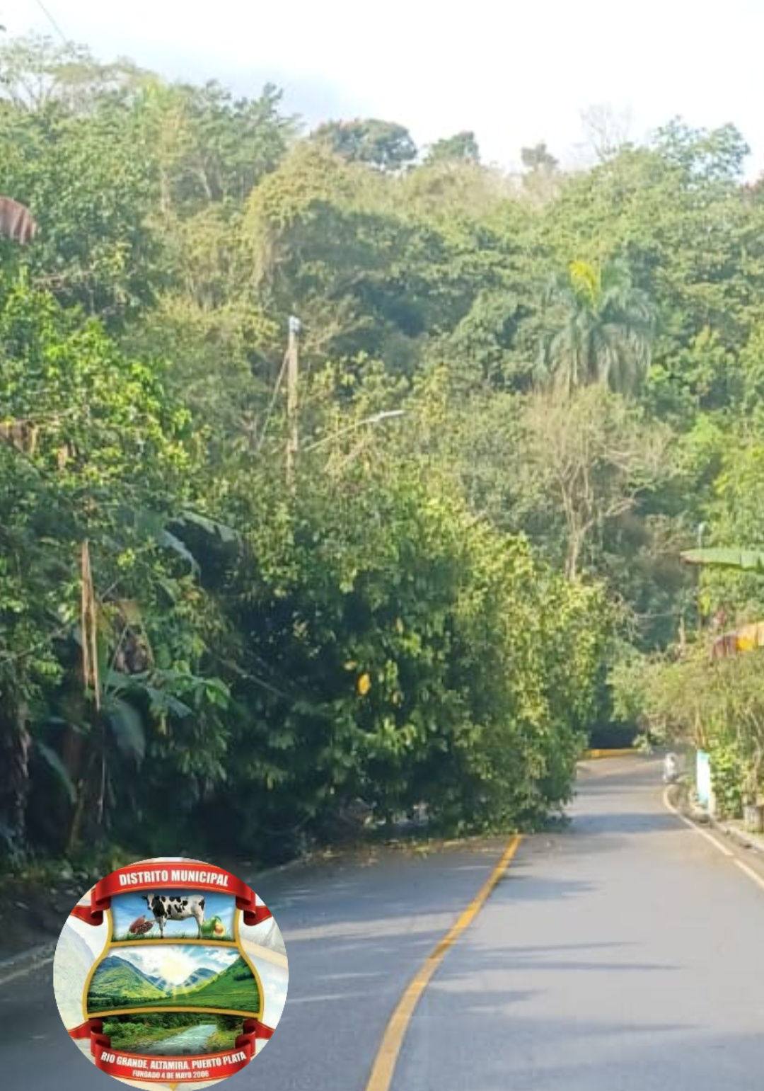 La brigada de de la Junta Distrital Río Grande dando repuestas inmediata a situaciones de caída de árboles en la vía de tránsito debido a las fuertes lluvias que an venidos callendo en el dia de ayer y la noche.